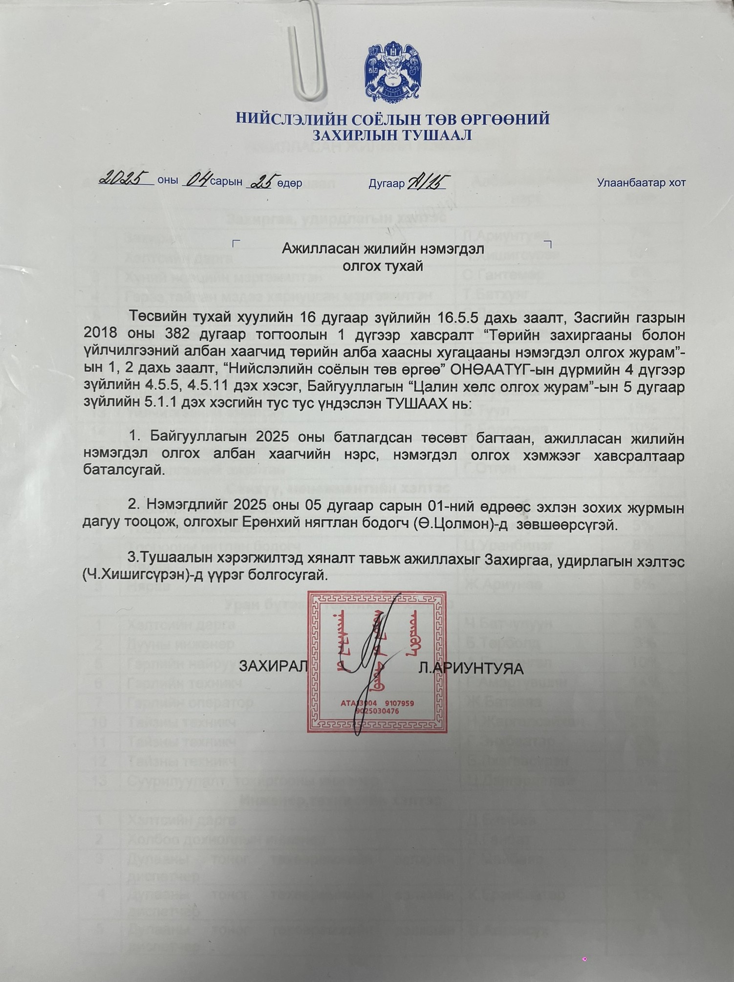 НСТӨний даргын тушаал