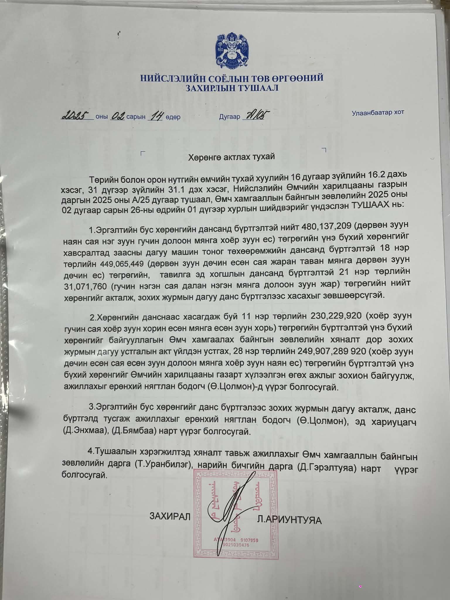 НСТӨний даргын тушаал