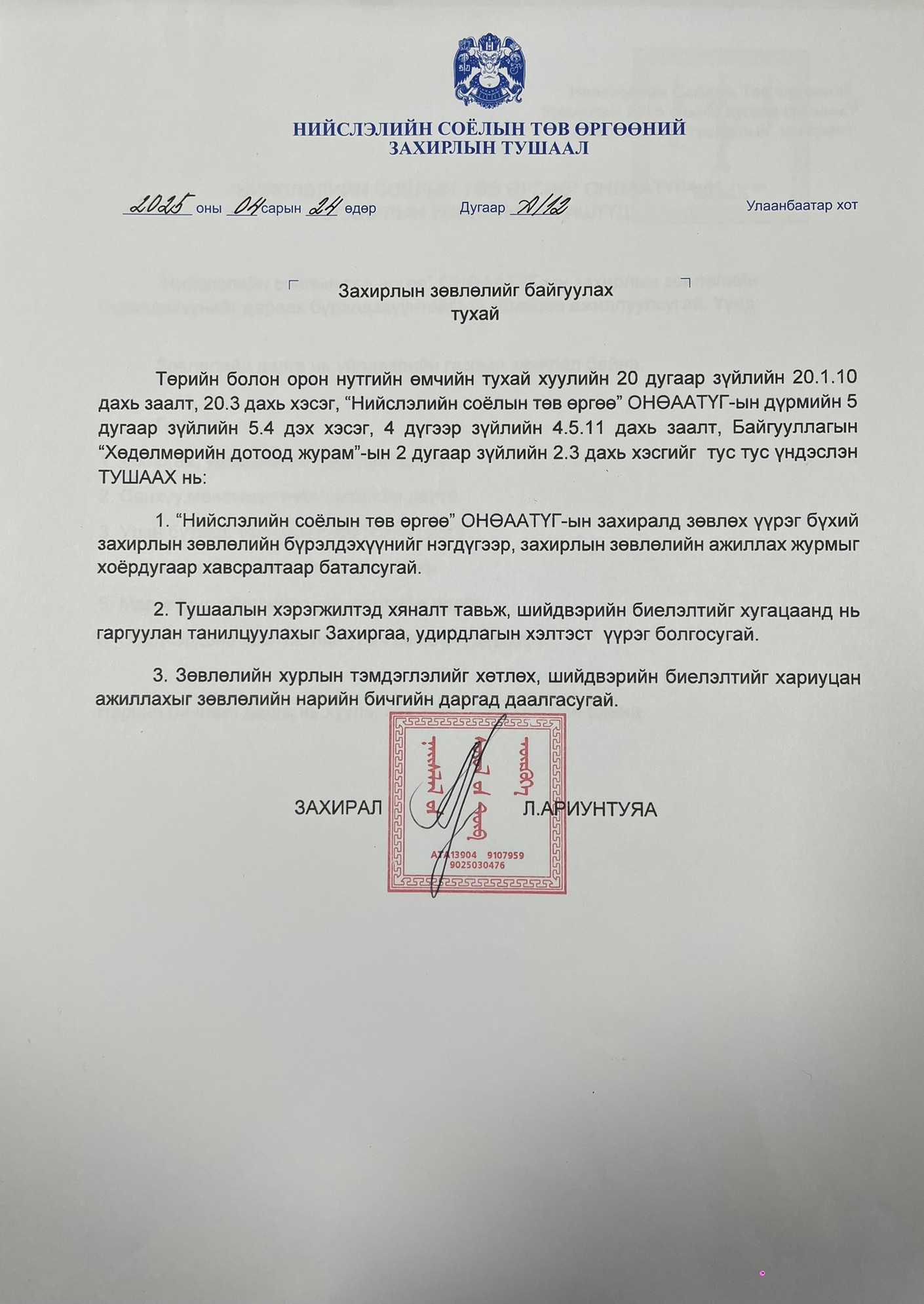 НСТӨний даргын тушаал