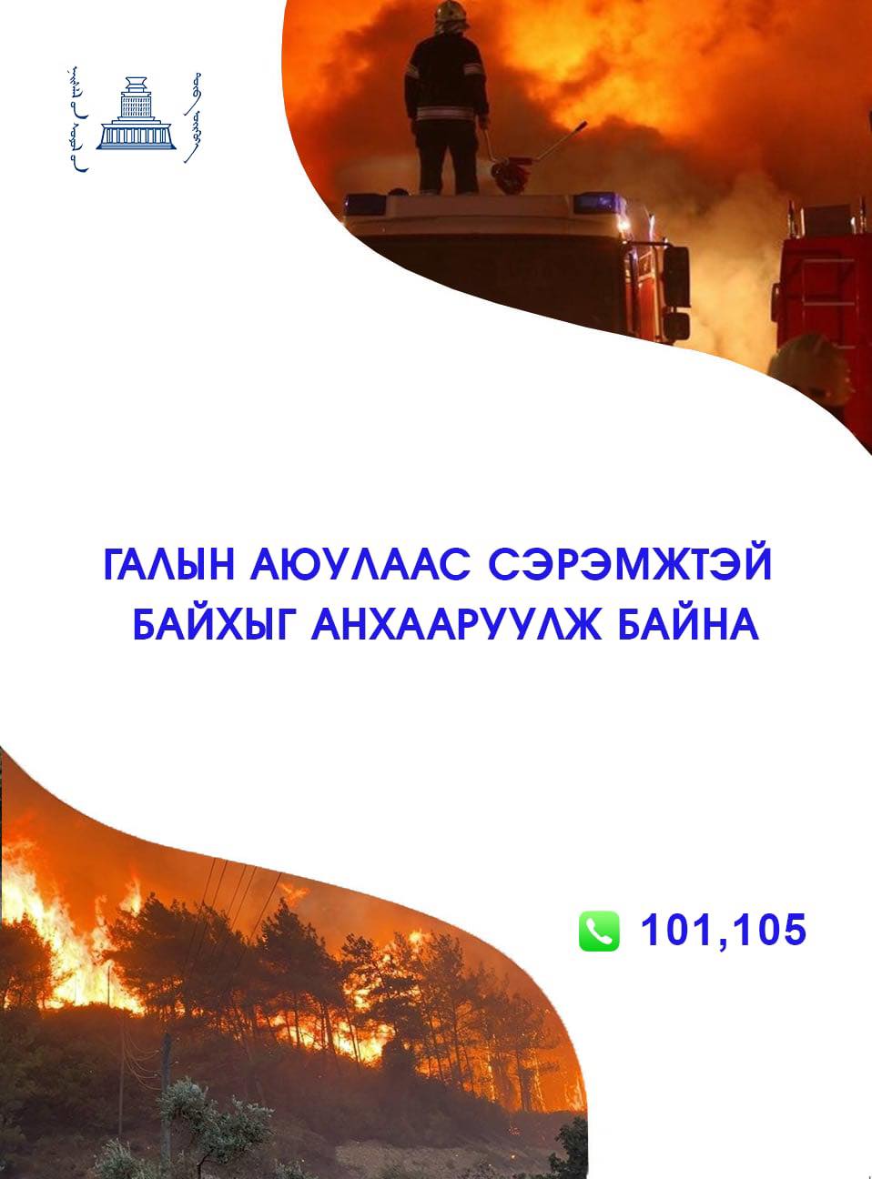 ГАЛЫН АЮУЛААС УРЬДЧИЛАН СЭРГИЙЛЭХИЙГ АНХААРУУЛЖ БАЙНА