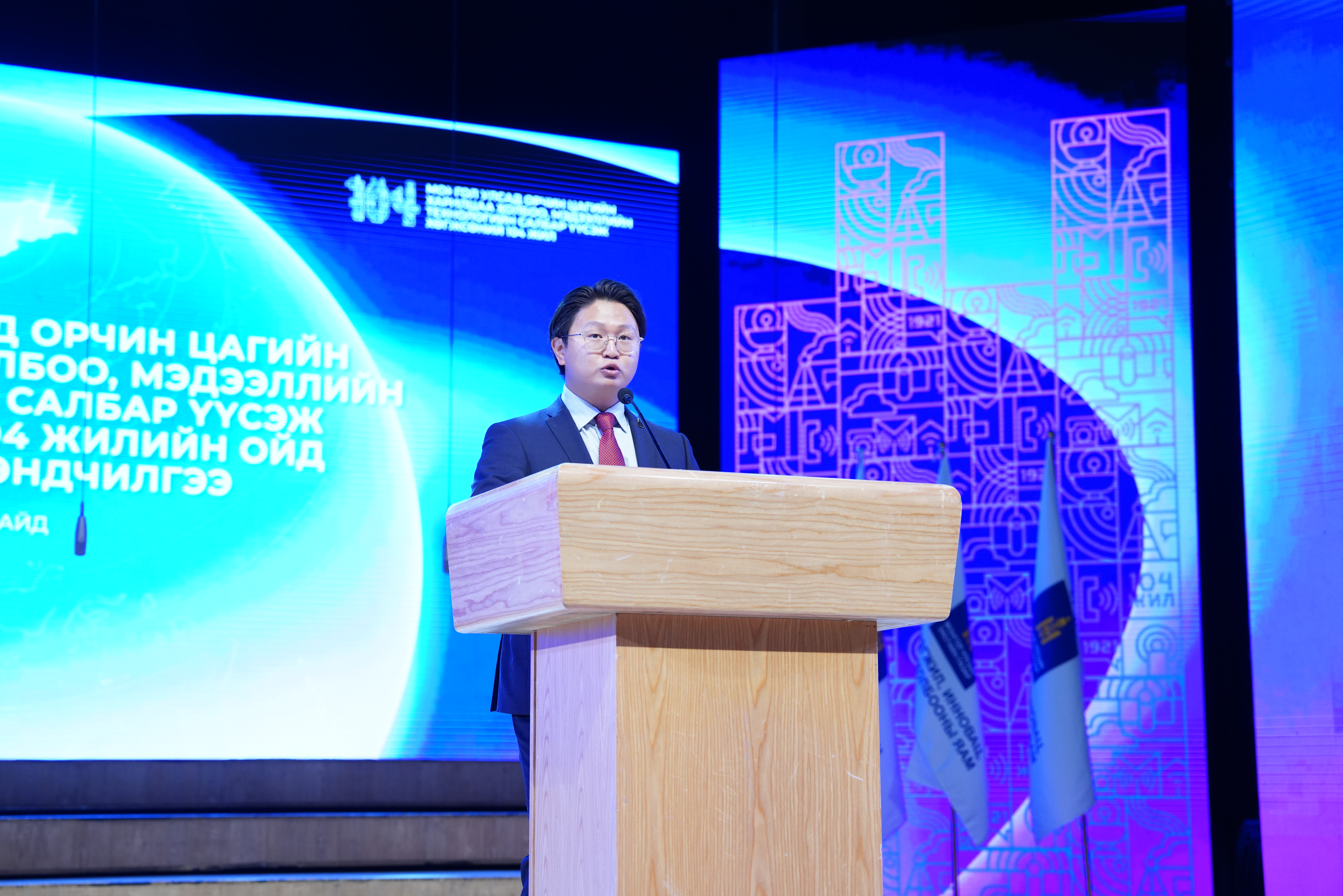 Монгол Улсад харилцаа холбоо, мэдээллийн технологийн салбар үүсэж хөгжсөний 104 жилийн ойн баярын хурал Нийслэлийн Соёлын Төв Өргөөний их танхимд боллоо.