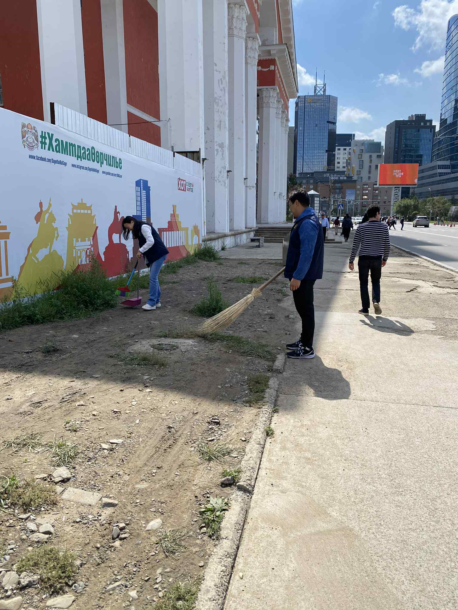 Иргэдийн эрүүл цэвэр орчинд ажиллаж амьдрах, хоггүй цэмцгэр орчныг бүрдүүлэхэд аж ахуйн нэгж байгууллага, иргэдийн оролцоог нэмэгдүүлэх зорилгоор бүх нийтийн цэвэрлэгээг зохион байгуулах ажлын хүрээнд Нийслэлийн Соёлын төв Өргөөний хамт олон ойр орчмынхоо 50 метр хүртэлх нийтийн эзэмшлийн зам талбай, гадна орчинг цэвэрлэлээ.