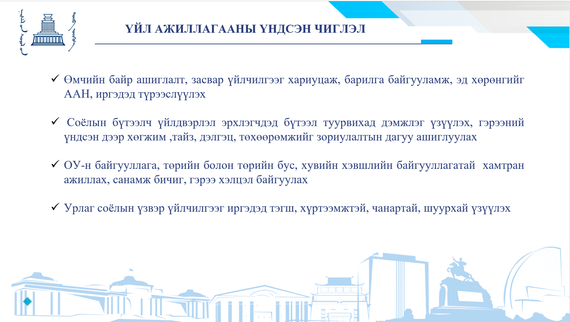 ҮЙЛ АЖИЛЛАГААНЫ ҮНДСЭН ЧИГЛЭЛ